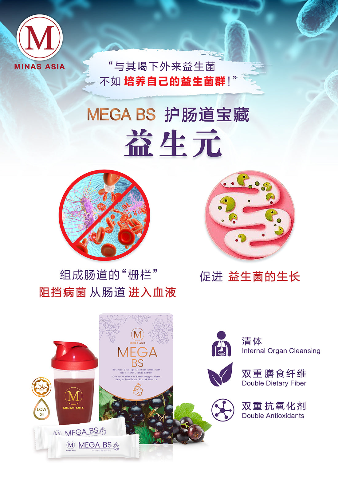 没有清体,吃得再营养都是白费。所以每天餐后喝一杯 MEGA BS 吧。